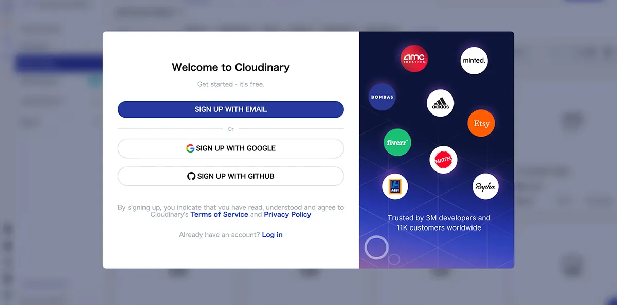 最初にCloudinaryのアカウント登録を行ってください。